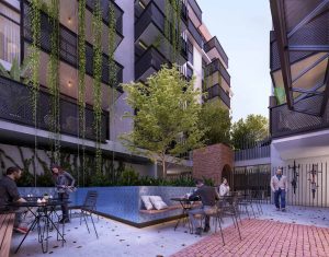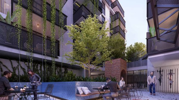 On Albion Street and just a short walk from a nearby station, the 70-apartment project designed by Six Degrees Architects taps into the suburb’s vibe with a communal rooftop with barbecues, a Mediterranean-style herb garden and orchard as well as ground floor space allocated to food and beverage operators.