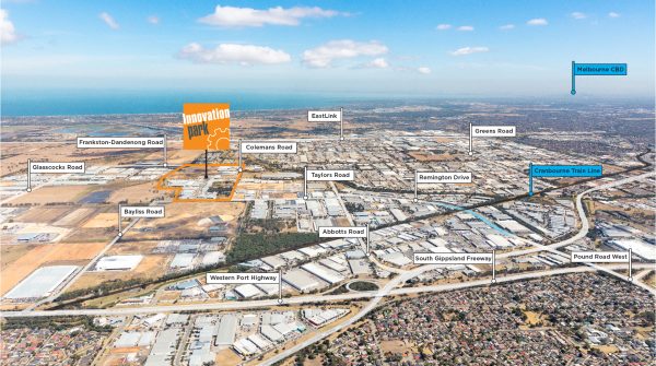 At the south east corner of Frankston Dandenong and Colemans roads, the 74 hectare master-planned business park is about 31 kilometres south east of the city.