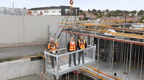 Quest Apartment Hotels General Manager – Growth, James Shields (centre) and Pellicano Managing Director, Nando Pellicano enjoy a site tour at Quest Preston