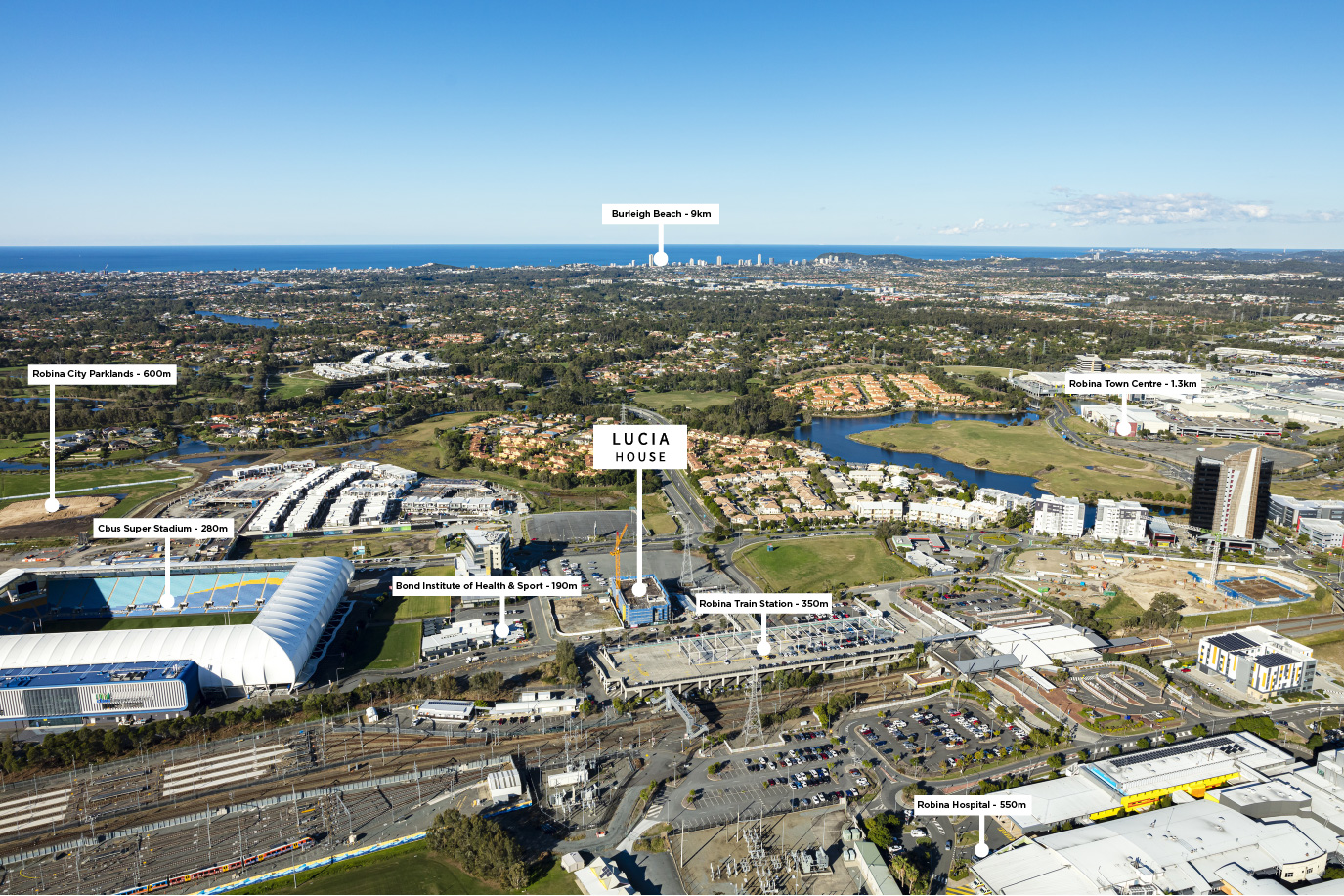 • Robina Medical Hub anchored by Robina Public Hospital, Robina Private Hospital, Queensland Health Medical Precinct and Australian Unity