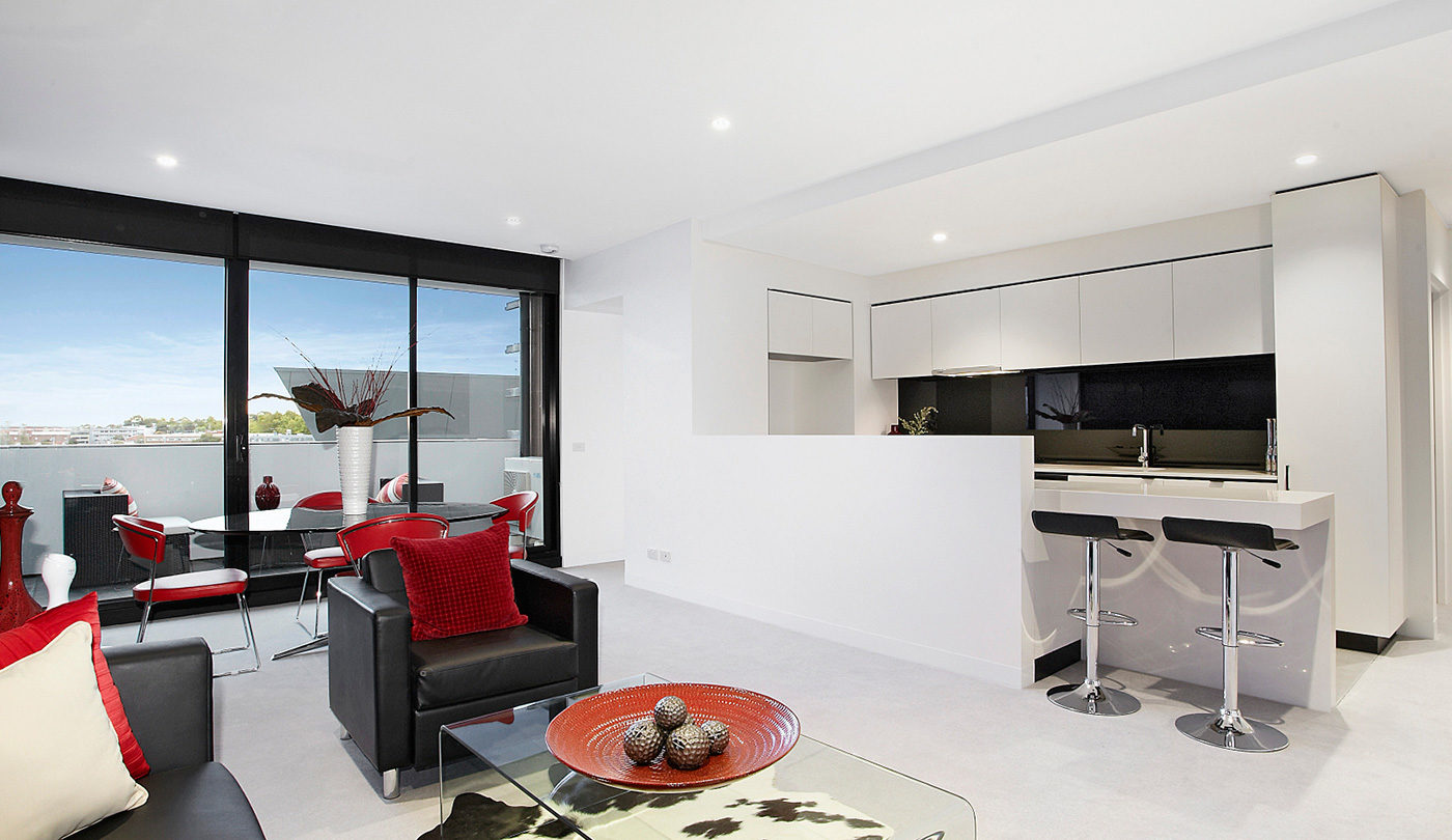 Modern residential apartments with open plan living and city views comprising 60 apartments over 10 levels. Includes ground floor retail tenancies and underground car parking. This development was constructed for APHAHA Investments Pty Ltd by Pellicano Builders.