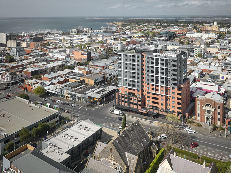 The building’s prized corner position benefits from exceptional access via road and public transport. LaTrobe Terrace, Bellarine Highway and Princes Freeway are minutes away. Geelong Train Station is a short 800m walk and bus routes 22, 25 and 43 are all within easy reach.