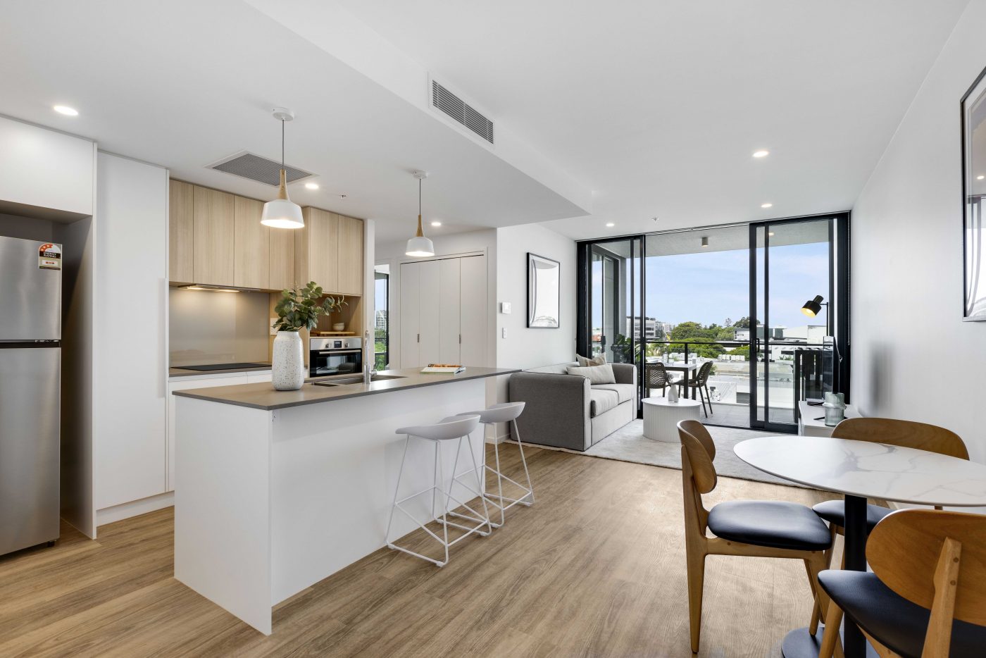 Nestled in the heart of Kangaroo Point, this eight storey building boasts 86 apartments, 54 of which are furnished one and two bedroom BTR, with the balance operated by Rambla as short-term stays. The building also includes a communal rooftop featuring exclusive Neuewell amenities; a magnesium pool, city viewing deck, barrel sauna, yoga lawn, dining and barbecue area and an outdoor gym.